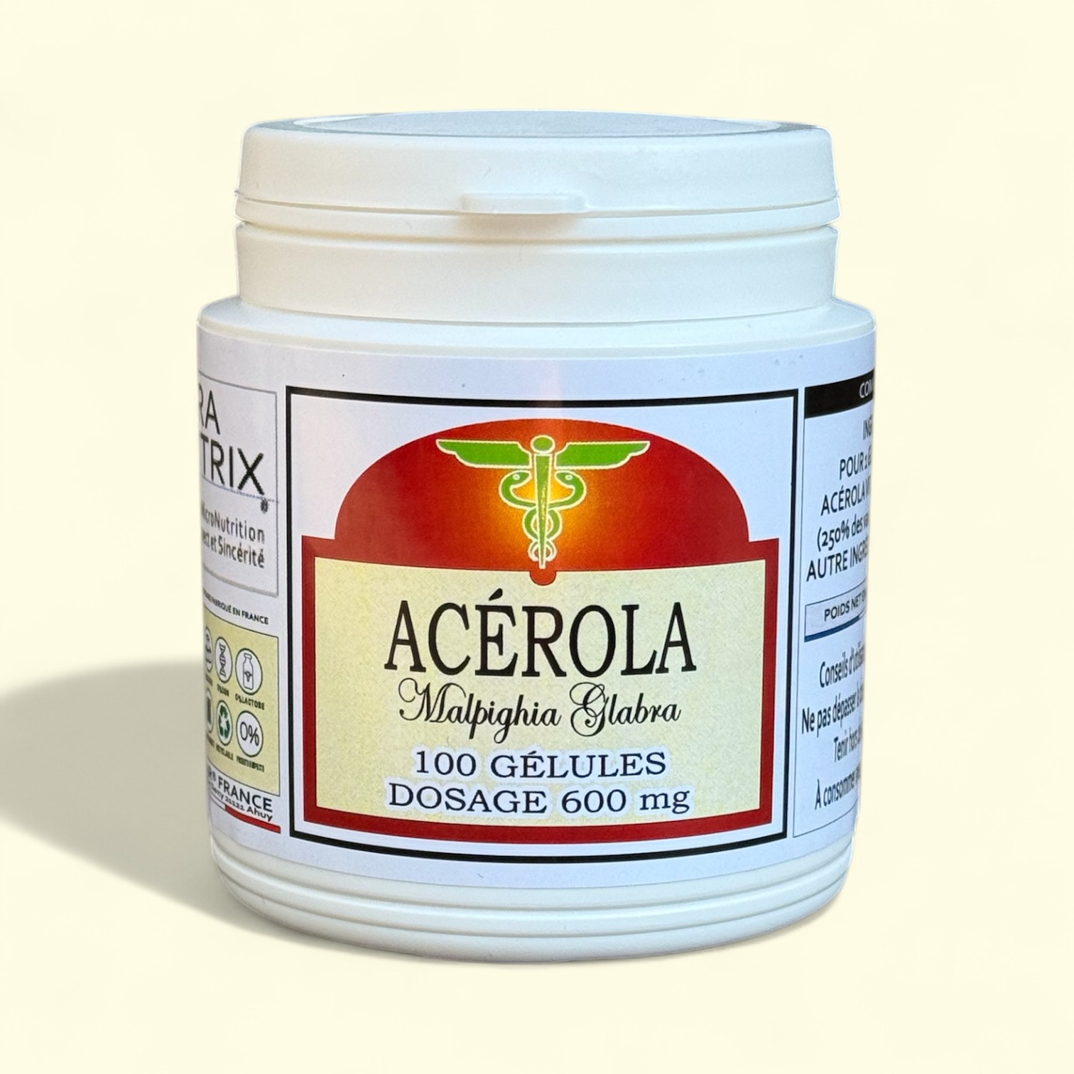 Formule hautement dosée : 600 mg d’extrait sec d’acérola par gélule, apportant 150 mg de vitamine C naturelle.